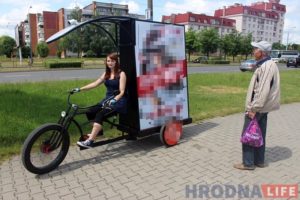 БЕЛАРУСЬ. Три специальных велосипеда с рекламными баннерами выехали на улицы Гродно.