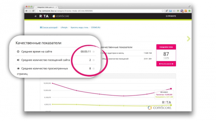 «Мы хотим, чтобы рынок и рекламодатели задумались над тем, как комплексно оценивать площадки, опираясь не только на аффинити и скидочную политику, но и на качественные критерии. Ведь если мы хотим вовлечь аудиторию в коммуникацию с брендом, нам не могут подойти сайты, у которых среднее время пребывания посетителя 30 секунд. Даже если они очень раскрученные и именитые. Около полугода мы вели переговоры с лондонским офисом comScore, после чего коллеги впервые открыли часть своих данных в бесплатный публичный доступ», – рассказал генеральный директор RTA Павел Гительман.