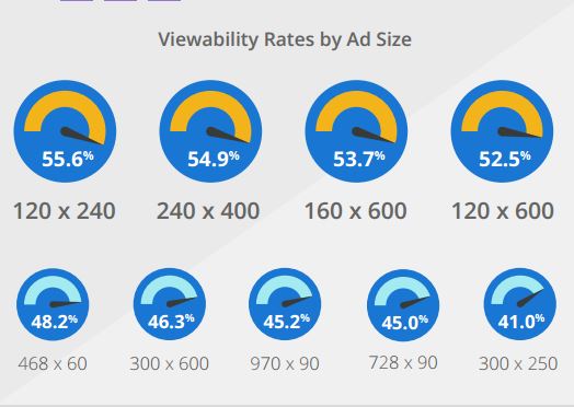 Самым удачным расположением рекламы Google называет правый верхний угол страницы, а самым заметным форматом является вертикальный 120х240. В среднем viewability в верхней части страницы составляет 68%, в нижней – 40%.
