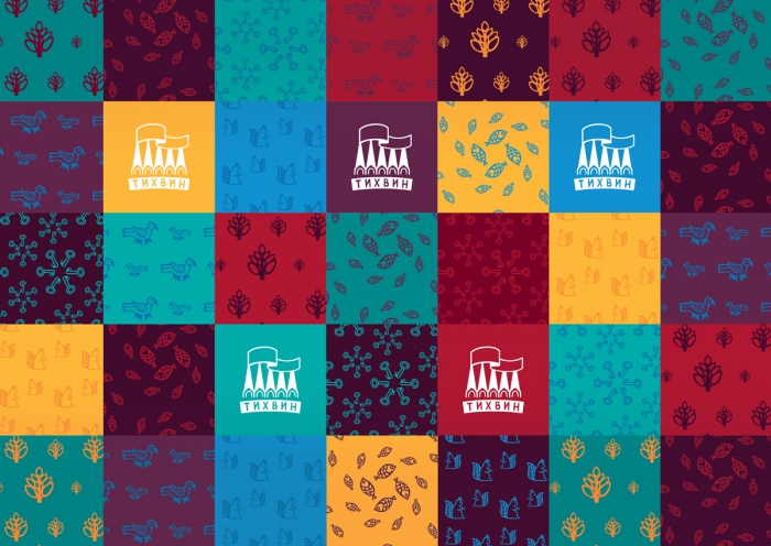 Стилеобразующими элементами фирменного стиля являются паттерны, в основе которых – пять графических объектов, символизирующих Тихвин как географическое пространство с уникальными особенностями. Дерево – символ лесного массива; символ развития и роста; белка – символ животного мира лесов; символ активности действий, быстроты реагирования на перемены; птица – символ мира и сотрудничества; символ полета фантазии и творчества в целом; рыба – символ обитателей водных просторов; один из символов христианства; ключ – символ дома и гостеприимства.