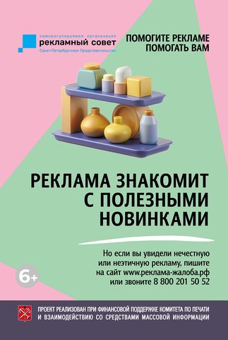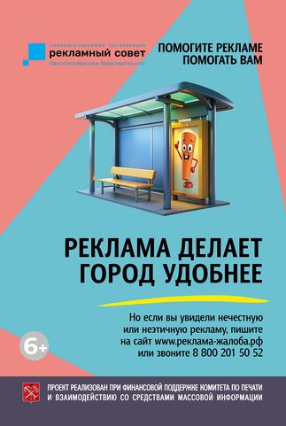 СОЦИАЛЬНАЯ РЕКЛАМА (Россия, Санкт-Петербург). В Северной столице проходит рекламная кампания под слоганом «Помогите рекламе помогать вам!» Она была разработана саморегулируемой организацией «Ассоциация маркетинговой индустрии «Рекламный Совет» (СРО «АМИ «РС») и стала одной из победительниц конкурса грантов на разработку и размещение социальной рекламы, проводимого правительством Санкт-Петербурга.