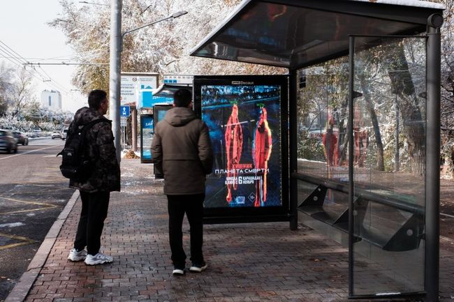 НАРУЖНАЯ РЕКЛАМА (Казахстан, Алматы). В южной столице страны появилась остановка, которая реагирует на присутствие человека с помощью тепловизионной технологии. На экране транслируется тепловое изображение прохожих в реальном времени – словно кадр из культового фильма «Хищник». Когда кто-то подходит ближе, контуры тела вспыхивают красными и жёлтыми оттенками, на экране появляется надпись TARGET LOCKED («Цель захвачена»), и привычная городская сцена превращается в эпизод научно-фантастической картины.