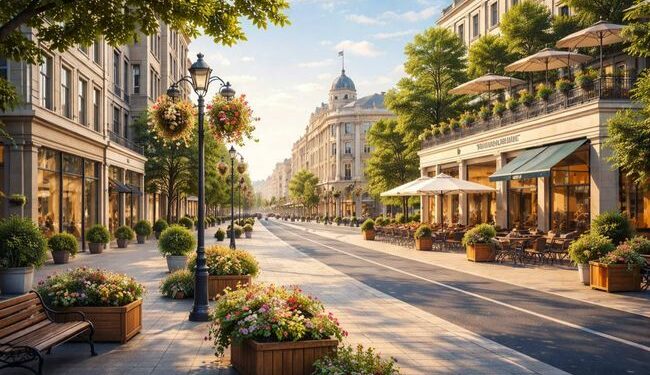 - Благоустройство – обустройство тротуаров, системы освещения, установка скамеек и озеленение.