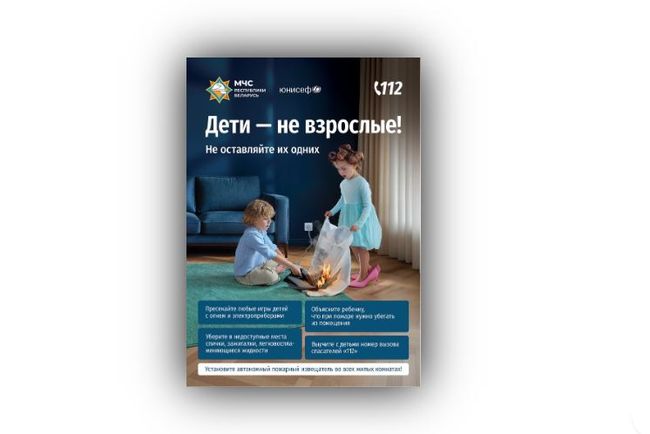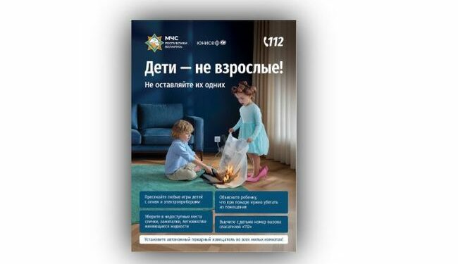 СОЦИАЛЬНАЯ РЕКЛАМА (Беларусь). Чтобы привлечь внимание родителей к проблеме гибели и травматизма детей дошкольного и младшего школьного возраста на пожарах и водоёмах в Республике Беларусь стартовала новая информационная кампания социальной рекламы «Дети – не взрослые! Не оставляйте их одних!». Она проводится по инициативе МЧС страны.