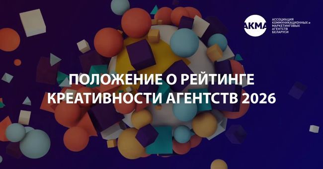 АКМА (Беларусь). Ассоциация коммуникационных и маркетинговых агентств (АКМА) Республики Беларусь объявила Положение о Рейтинге креативности агентств на 2026 год – одном из ключевых инструментов системного развития креативной и коммуникационной индустрии.