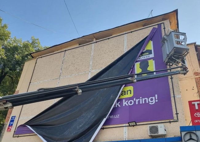В ходе инспекции было выявлено, что ООО Hamroh Mikromolya Tashkiloti, работающее в Тайлякском районе Самаркандской области, установило конструкции наружной рекламы на фасаде и крыше своего здания без необходимых разрешительных документов.
