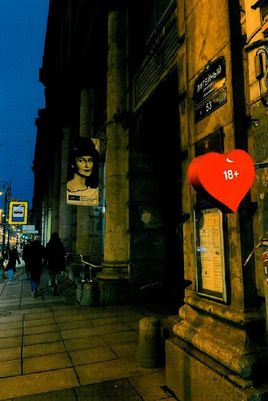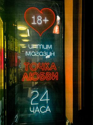 В Северной столице на Литейном проспекте, 51, находится круглосуточный магазин «Точка любви», который разместил в своей витрине сердечко с указанием «18+», название – интим-магазин «Точка любви» и время работы – 24 часа.