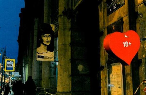 Всё бы ничего, но рядом находится вход во двор, где расположен знаменитый Фонтанный дом – ныне СПб ГБУК «Государственный литературно-мемориальный музей Анны Ахматовой в Фонтанном доме». Его администрация обратилась с заявлением в Санкт-Петербургское УФАС, в котором указало на недопустимость размещения информации, связанной с продажей товаров для взрослых, в непосредственной близости от учреждения культуры.