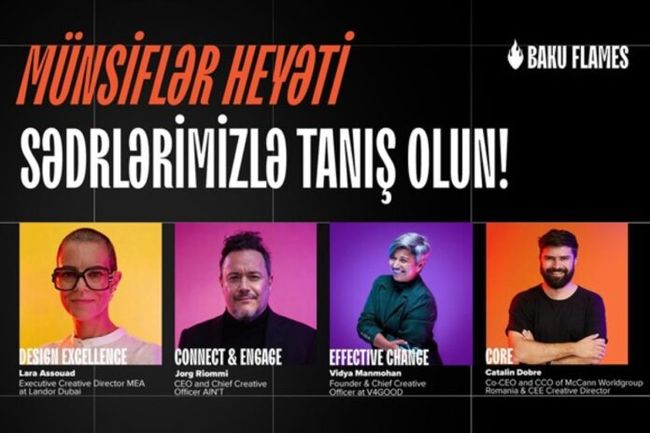 АЗЕРБАЙДЖАН. Международный фестиваль креативности и эффективности Baku Flames 2026 (15 – 16 мая 2026 года) объявил председателей жюри, которые возглавят оценку работ в новом сезоне. В состав вошли ведущие представители глобальной креативной индустрии из сетевых агентств и независимых компаний, работающих на уровне крупнейших международных фестивалей.