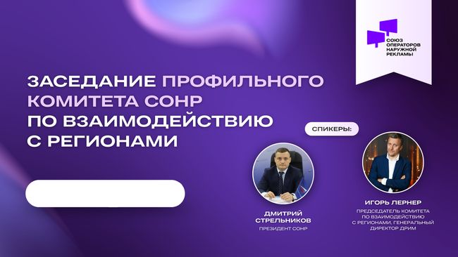 СОНР (Россия). Состоялось заседание профильного комитета Союза операторов наружной рекламы (СОНР) по взаимодействию с регионами. Модератором выступил председатель комитета, генеральный директор рекламного агентства «ДРИМ» Игорь Лернер.